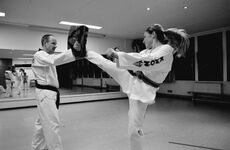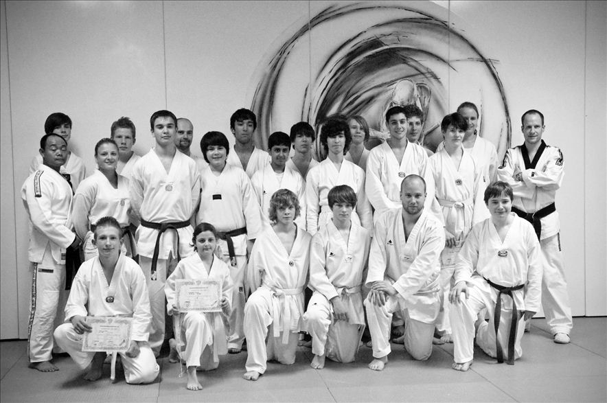 "Mit der jeweils besten Prüfung zum 1. Dan demonstrierten Ilijana Kljajic (20) und Anouar Sywottek (21) eine großartige Leistung in allen Prüfungsfächern, die auch von den Zuschauern mehrfach mit begeistertem Applaus belohnt wurde. Hier haben zwei junge Allround-Talente die gesamte Breite des Taekwondo vorgeführt und damit bei dem einen oder anderen alten Hasen Erinnerungen an vergangene Zeiten geweckt."
